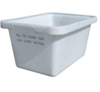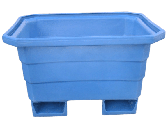 The body is ribbed to enhance the tub’s strength, and the corners are bevelled to ensure the tub remains rigid when fully loaded. Channels run through the full width of the tub to allow it to be easily manoeuvred with a forklift.
